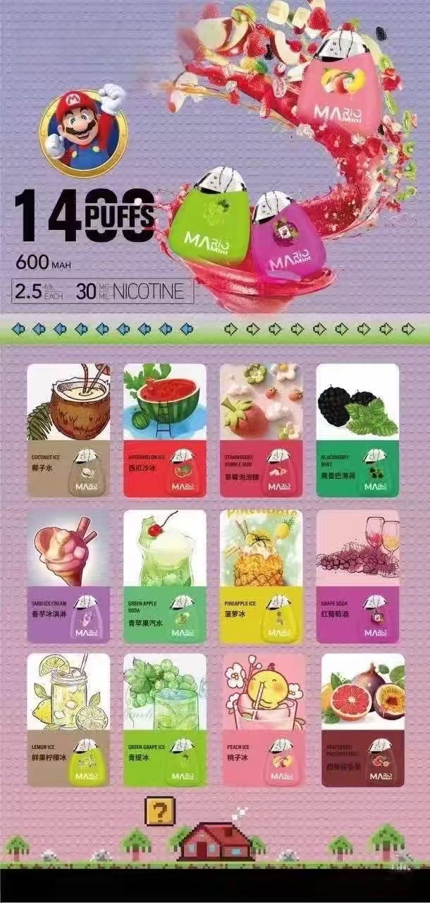 馬里奧小火山馬里奧 小火山 網紅款 1400口一次性拋棄式電子煙 小巧玲瓏 如同糖果 買五送二